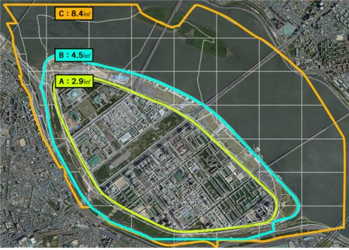 여의도 - 윤중로 안쪽- 섬 전체 | 2.6 km 3.1 km | 1.9 km 2.3 km | 2.9 km2 4.5 km2 | 88만 평 136만 평 |